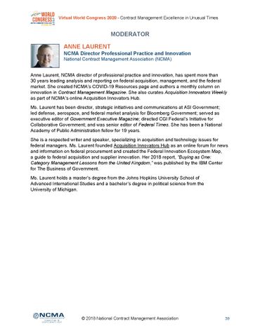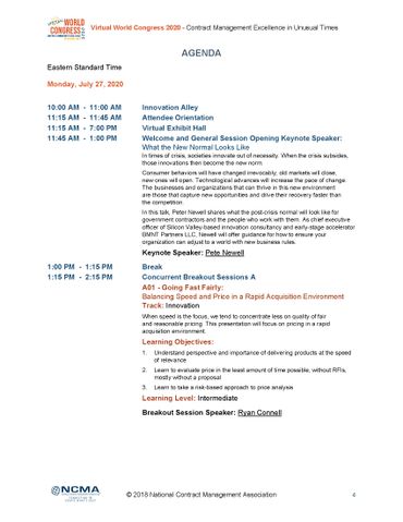 The National Contract Management Association held its annual World Congress virtually over Zoom for the first time. The three day online gathering called for creative measures to keep track of the agenda, and list of speakers who presented.